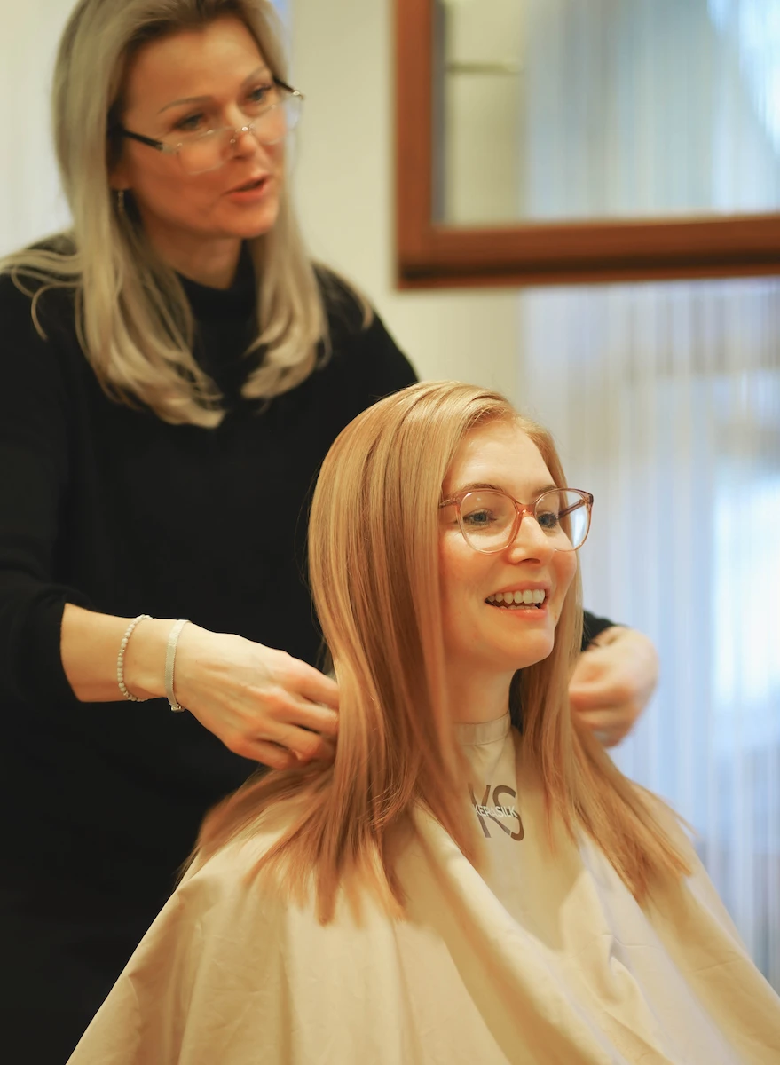 - Vorbereitung: Das Haar wird gründlich mit einem speziellen Reinigungsshampoo gewaschen, um alle Rückstände und Ablagerungen zu entfernen und das Haar optimal auf die Behandlung vorzubereiten.